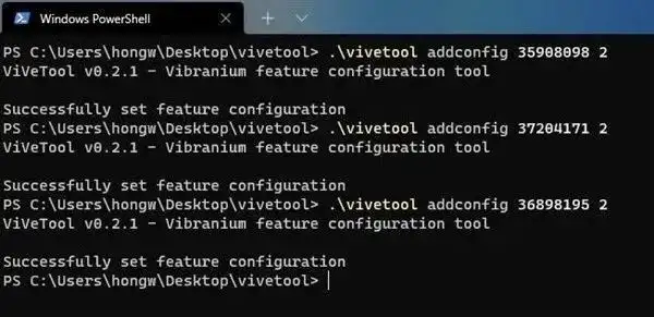 首先,将Win11升级至Dev频道Build 22538,并下载好最新版ViveTool 0.2.1;
